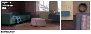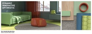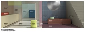 De RAL Trendbox vertaalt de 15 kleuren uit het kleurtrendrapport RAL COLOUR FEELING 2026+ naar verschillende materialen en oppervlakken.