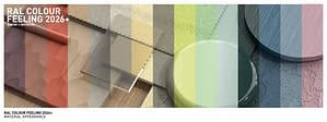 Het palet 2026+ slaat een brug tussen verleden en heden en kijkt vooruit naar de toekomst. Vijf kleuren uit de vorige editie krijgen een update met tien nieuwe metgezellen uit het RAL DESIGN SYSTEM plus. Drie kleuren zijn sinds 2023+ invloedrijk en blijven moderne klassiekers.